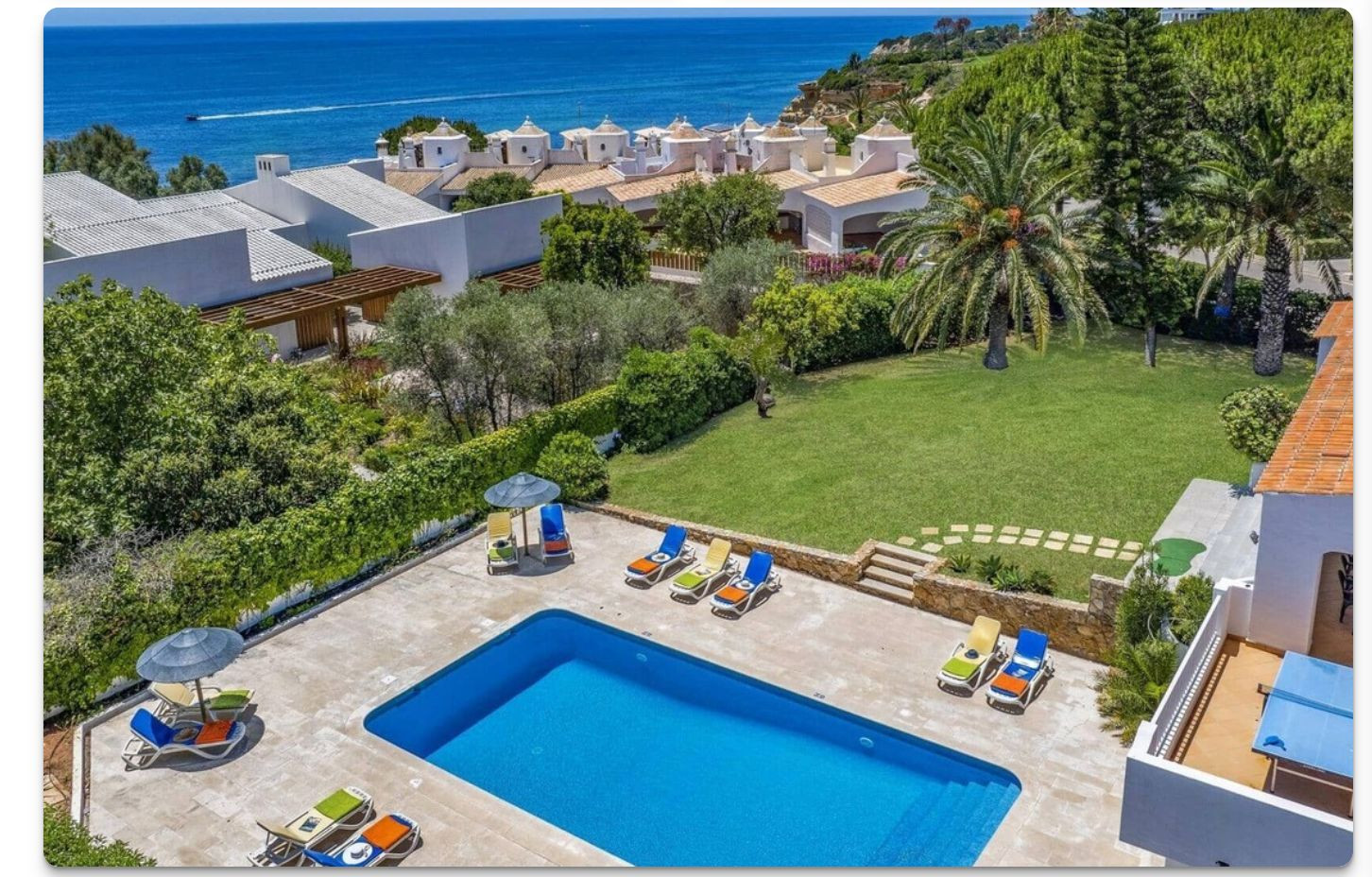 The villa in Armação de Pêra has 7 bedrooms and has capacity for 14 people.
